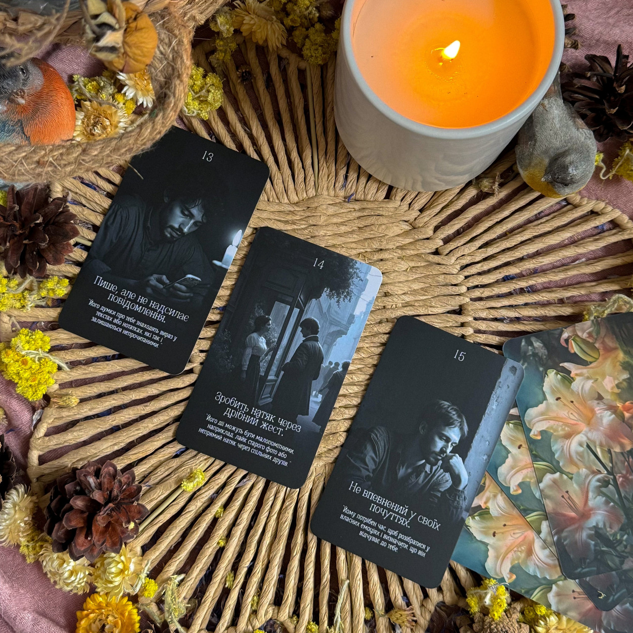 Витягніть по одній карті з кожної частини, щоб зрозуміти його почуття та дії.