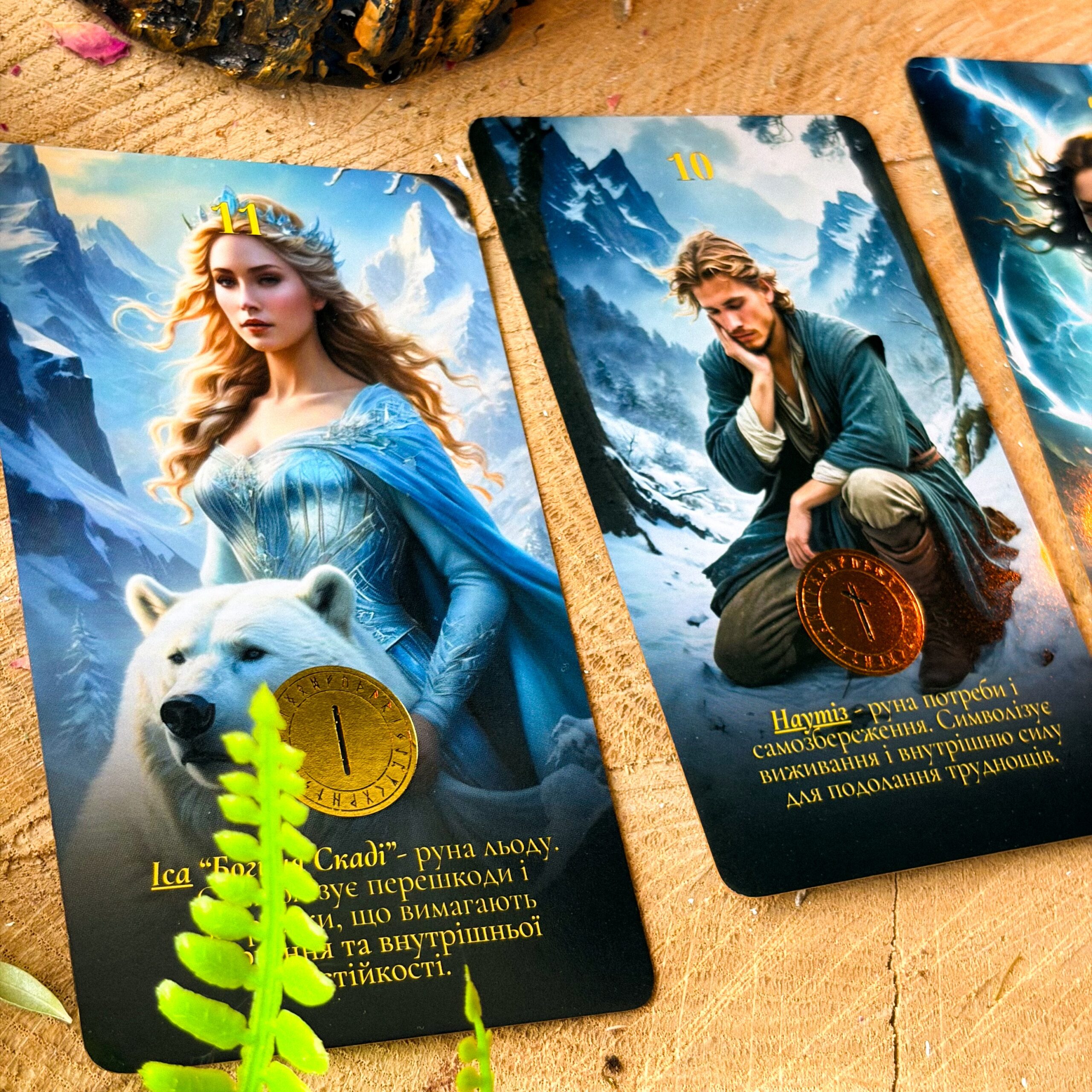 Авторська колода у скандинавській традиції, створена для глибокої, усвідомленої рунічної роботи. Це руни у форматі карток, де кожна деталь має значення.