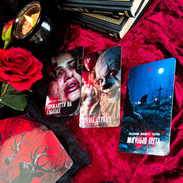 Це унікальна кінематографічна подорож у простір страху, трилеру й жаху. Колода створена для тих, хто не боїться дивитися у власні тіні й відчувати холодний подих невідомого.